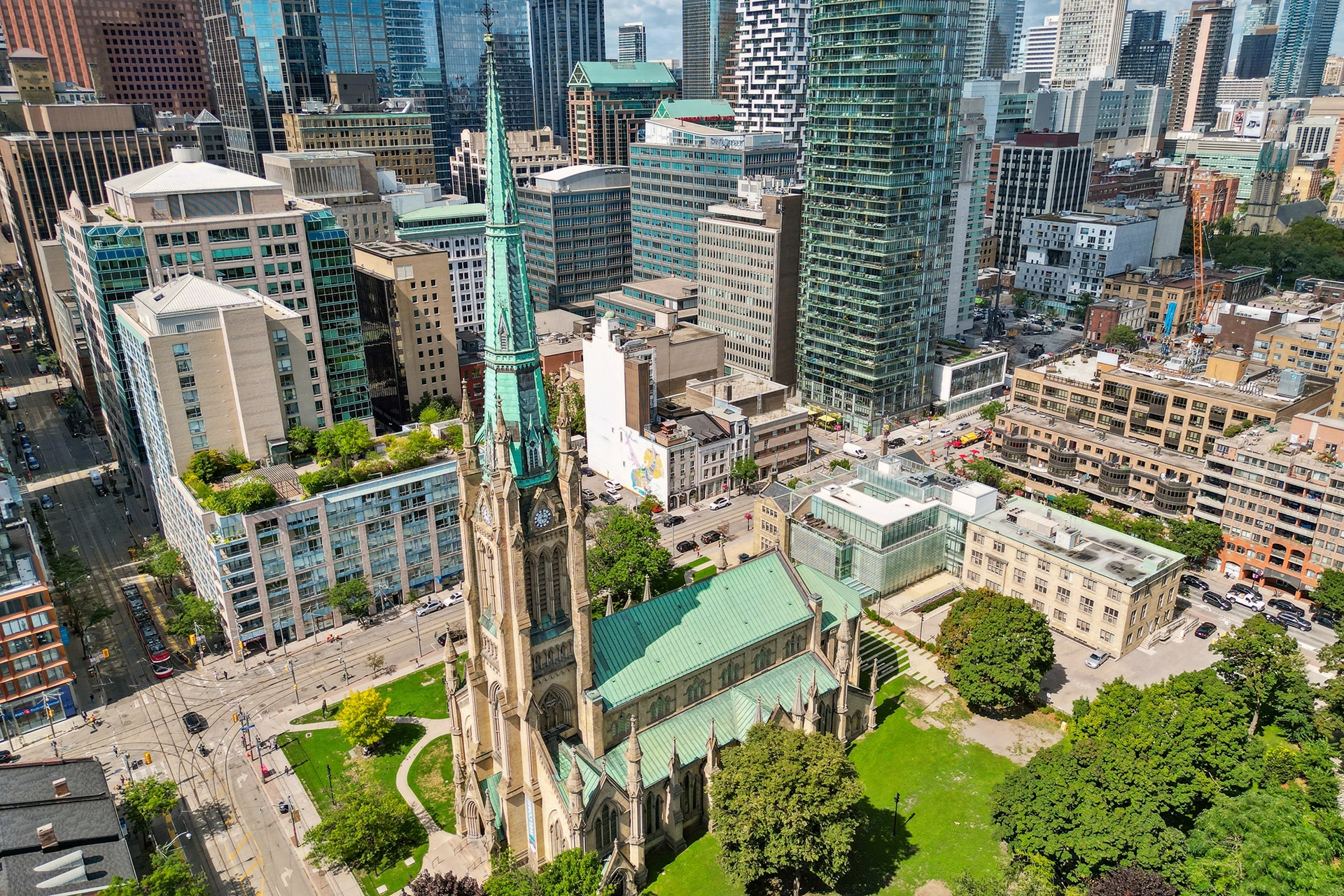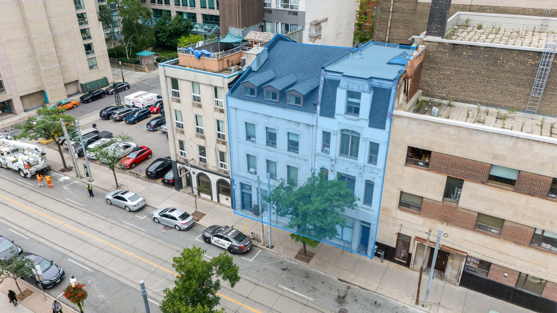 80-82 Church Street, comprising two interconnected office buildings, presents the potential for future land assembly for high-density development or a boutique redevelopment in rapidly growing downtown East. This mid-block property, located within steps of King Street East and the Financial Core, offers splendid views of St. James Cathedral. The property shares the block with a proposal to build an 88-storey tower.